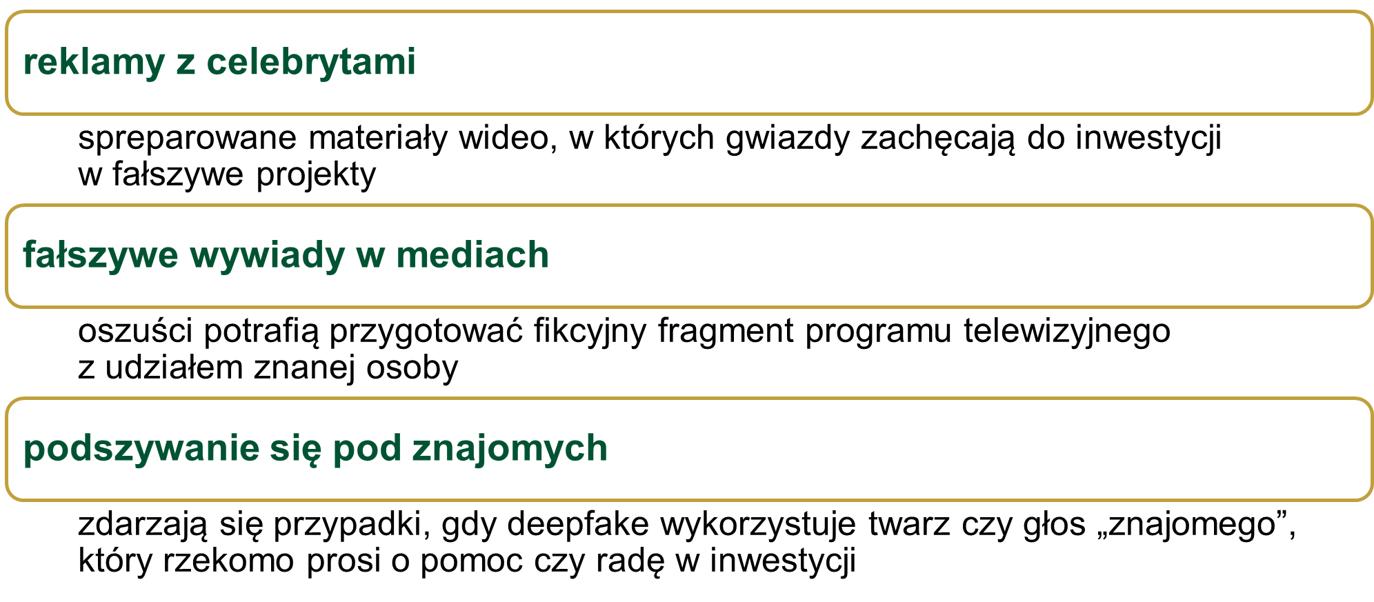 Najpopularniejsze oszustwa z użyciem deepfake: